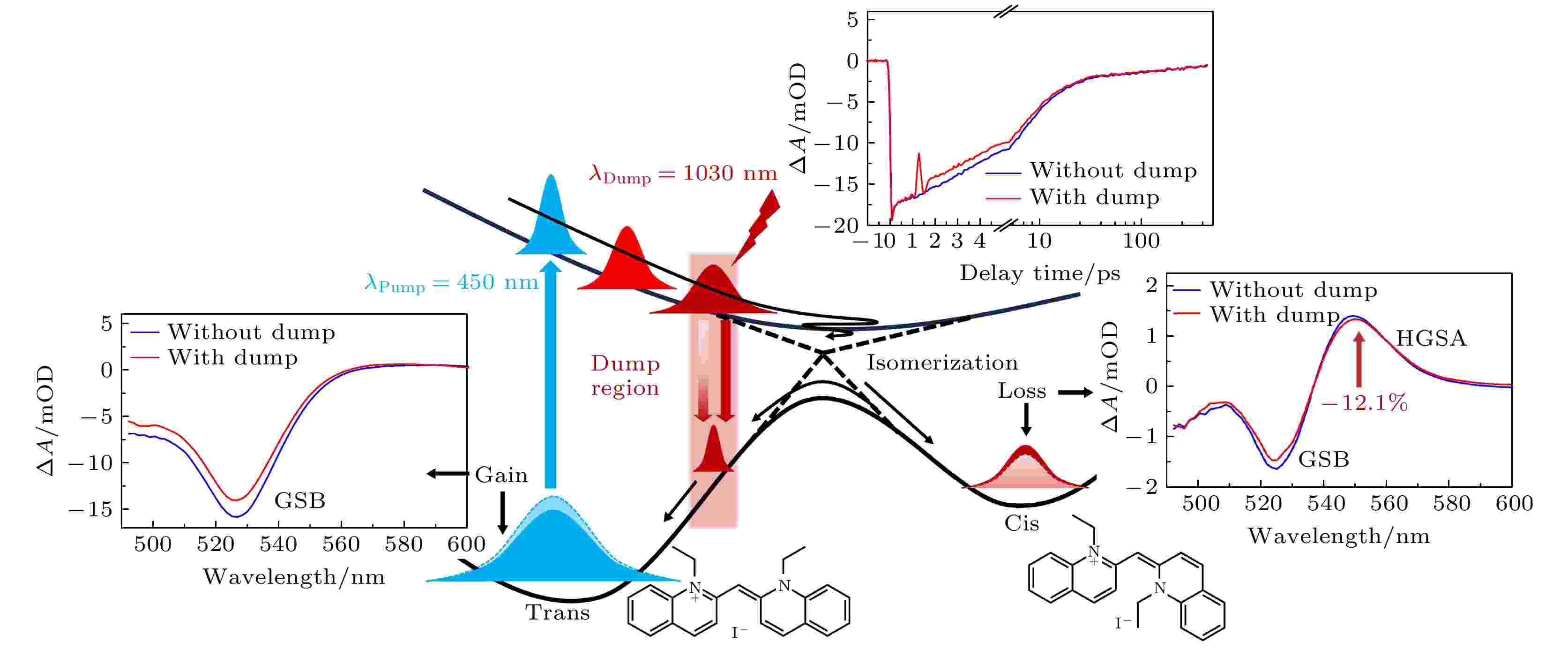 Photoisomerization is a prototypical photophysical and photochemical reaction, and the reaction quantum yield depends on its excited-state dynamic. Changing the evolution path of molecular excited states to achieve precise control over photochemical reactions has long been a dream pursued by physicists and chemists. To investigate the effect of femtosecond laser pulse on the ultrafast reaction, the ultrafast photoisomerization of 1, 1'-diethyl-2, 2'-cyanine iodide (1122C) in methanol is studied using pump-dump-probe spectroscopy. A third femtosecond pulse (Dump) at 1030 nm, which is delayed by 1 ps relative to the initial pump pulse, is introduced into the traditional pump-probe experiment. The recovery of ground state bleaching (GSB) and decrease of the cis product are observed in the pump-dump-probe experiment. It indicates that the dump pulse successfully promotes the initial transform: skipping the trans-cis isomerization pathway in the excited state and returning to the ground state directly through stimulated emission. It is found that the cis yield is reduced by approximately 12.1% under irradiation of the dump pulse. Our research shows that the quantum yields of a typic ultrafast photoisomerization reaction is successfully regulated by using femtosecond laser pulse, demonstrating the potential of femtosecond multi-pulse spectroscopy in modifying excited-state evolution pathways and optimizing photochemical reaction yields. This study provides theoretical and technical support for precisely controlling complex photochemical reactions in the future.