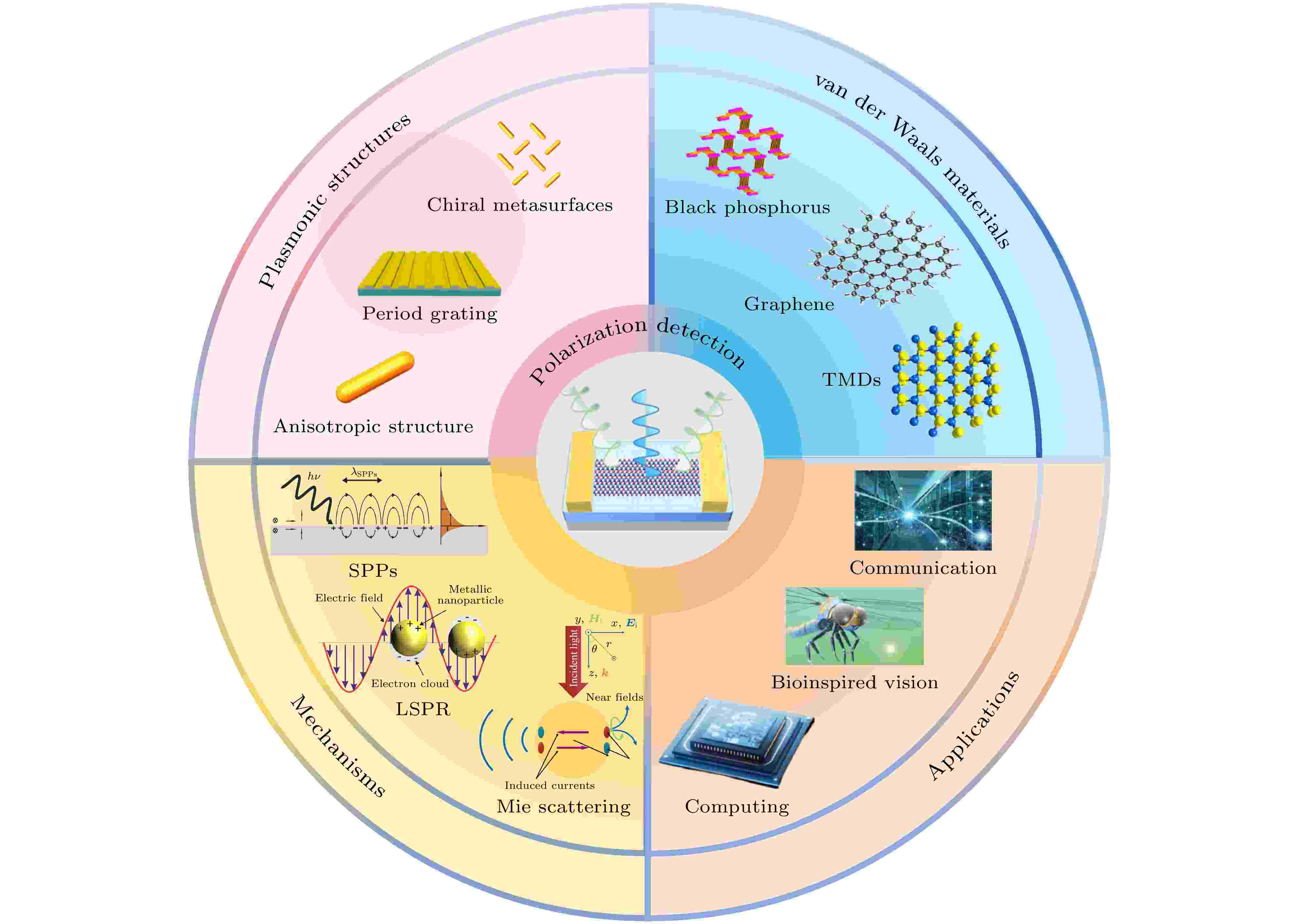 Polarization detection is a fundamental way to obtain the vectorial nature of light, supporting advanced technologies in the fields of optical communication, intelligent sensing, and biosensing. Two-dimensional van der Waals materials have become a promising platform for high-performance polarization-sensitive photodetectors due to their inherent anisotropy and tunable electronic properties. Nevertheless, their intrinsically weak light absorption and limited photoresponse efficiency remain major bottlenecks. Plasmonic nanostructures, which can achieve strong localized field confinement and manipulation on a nanoscale, provide an effective strategy to overcome these limitations and substantially improve device performance. In this review, we systematically summarize the coupling mechanisms between plasmonic architectures and vdW materials, highlighting near-field enhancement, plasmon-induced hot-carrier generation, and mode-selective polarization coupling as key physical processes for enhancing photocarrier generation and polarization extinction. Representative devices including metallic gratings, hybrid nanoantennas, and chiral metasurfaces are compared in terms of responsivity, detection speed, operating bandwidth, and polarization extinction ratio, revealing consistent improvements of one to two orders of magnitude over bare vdW devices. We further survey emerging applications in the fields of high-speed polarization-encoded optical communication, on-chip optical computing and information processing, and bioinspired vision and image recognition systems, where plasmonic-vdW hybrid detectors demonstrate unique advantages in miniaturization and energy efficiency. Finally, we discuss current challenges such as large-scale fabrication of uniform plasmonic arrays, spectral bandwidth broadening, and seamless integration with complementary photonic circuits, and outline future opportunities for next-generation polarization-resolved optoelectronic platforms.