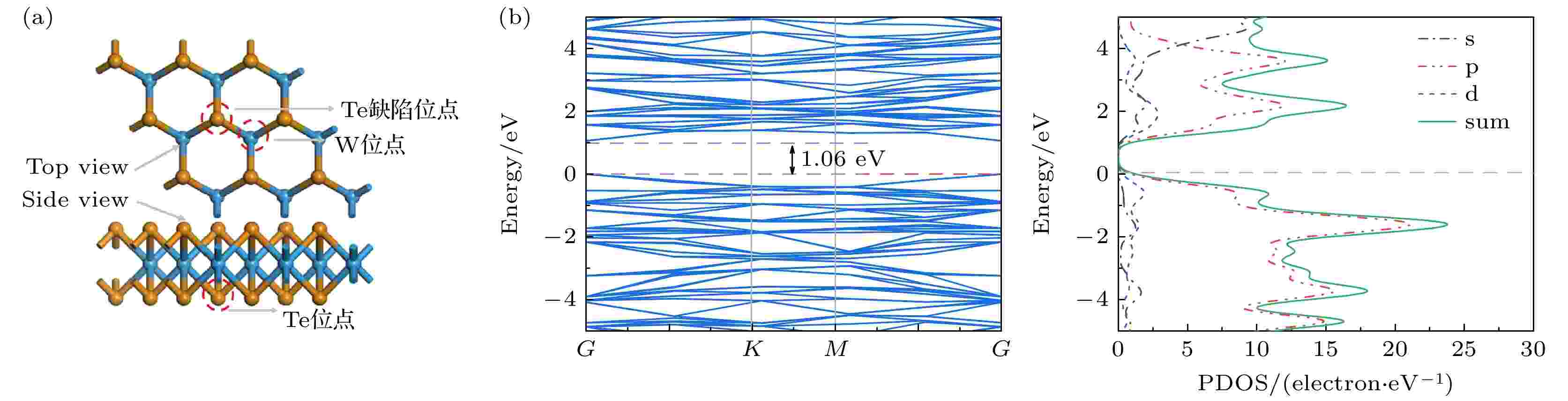 Using first-principles calculations based on density functional theory with a plane-wave ultrasoft pseudopotential approach, we conduct computations using the CASTEP (Cambridge Sequential Total Energy Package) module within the Materials Studio software. The electronic band structures, densities of states, and optical properties of intrinsic monolayer WTe2, monolayer WTe2 with a single tellurium vacancy (VTe), and rare-earth-doped VTe-containing monolayer WTe2 (VTe-X, where X = Ce, Yb, Eu) are systematically investigated to explore the synergistic effects of rare-earth doping and tellurium vacancy defects on the optical properties of monolayer WTe2. The results indicate that compared with the VTe model, the VTe-X models lead to a more pronounced enhancement of the optical performance in the infrared region (0–1.2 eV). All of VTe-X structures exhibit metallic characteristics, with a notable increase in the density of states near the Fermi level. In particular, the VTe-Yb model demonstrates significant improvement in the infrared range: the absorption coefficient, reflectivity, static dielectric constant, and peak value of the imaginary part of the dielectric function are enhanced by factors of 3.76, 1.83, 2.63, and 24.20, respectively, compared with those of pristine monolayer WTe2. This study provides a theoretical foundation for designing infrared photodetectors based on monolayer WTe2 substrates.